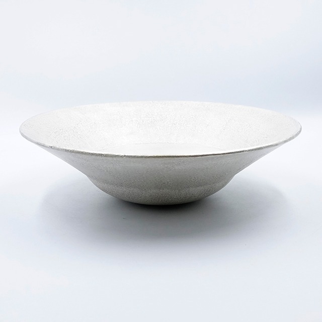 野田里美さんの銀彩作品は、シンプルながらも存在感のあるデザインで、空間や食卓を彩ってくれます。 野田さんの作品は、時間とともに深い趣を増し、その経年変化を楽しむことができます。 サイズ 約Φ20.5cm × H4.5cm 野田さんは、テクスチャにも特にこだわりを見せています。 作品は一つ一つ手作業で作られており、そのため微妙な違いがありますが、それが一つ一つの作品に個性と魅力をもたらしています。 銀彩のお取り扱いについて ・重曹等である程度銀彩を保つ事ができますが、あまり強くこすらず優しく洗ってください。 ・電子レンジや漂白剤の使用は避けてください。これらは銀を黒く変色させる可能性があります。 ・硫黄成分を含む食品、特に卵料理等も、銀彩の色調を変化させる可能性があります。これらの食材と直接触れさせることは避けてください。 これらの注意事項を守りつつ、「育つ器」として銀彩の経年変化を趣として楽しんでいただければ幸いです。 野田里美プロフィール 2003 岐阜県セラミックス技術研究所 研修生として2年在籍 2004 ビアマグランカイ5 審査員特別賞 2004 (財)金津創作の森財団 「酒の器展」入選 2005 「第39回 女流陶芸公募展」 T氏賞 2008 (財)金津創作の森財団 「酒の器展」 入選 2009 工芸都市高岡2009クラフトコンペ 入選 2010 第5回(財)金津創作の森財団「酒の器展」 入選 2010 ビアマグランカイ8 入選 2011 第50回 日本クラフト展 入選 2012 Le Carrousel des metiers d’art et de creation」( カルーゼル・デ・メティエ・ダール・エ・ドゥ・クレアシオン) Carrousel du Louvre a Paris (ルーブル地下 カルーゼル・デュ・ルーヴル内) ジャパンブースにて出展 ※手作りの為、作品ごとに多少の違いがございます事ご了承下さい。 ※写真は色等できるだけ作品と同じ色を心がけていますが 光の加減等で多少異なる場合がある事をご了承下さい。 ※気になる点などがございましたらお気軽にお問い合わせ下さい 野田9-3