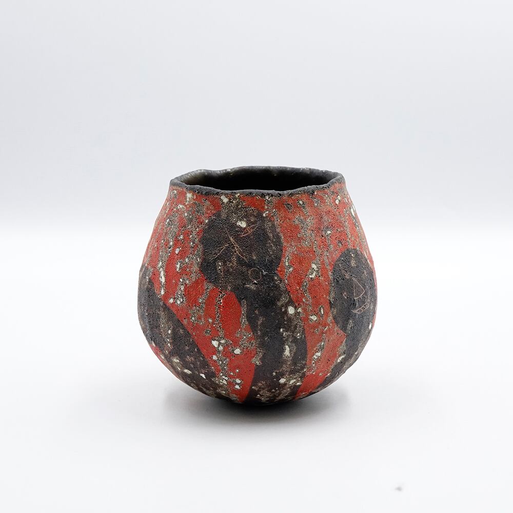 今回の馬川さんの作品は、釉薬の色合いや模様、質感に渋さがありつつも、絵柄には遊び心が感じられる楽しい仕上がりとなっています。
