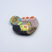 洗練された色彩とフォルムが織りなす、可愛らしくも懐かしく、どこか非日常の夢を感じさせる作品です。