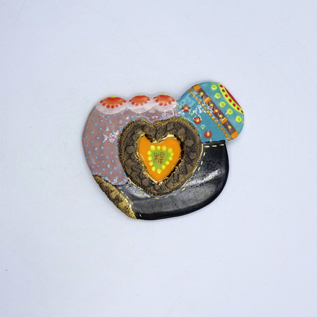 2種類の土を用い、釉薬を重ね掛けすることで、平面ながらも立体的な凹凸を生み出しています。