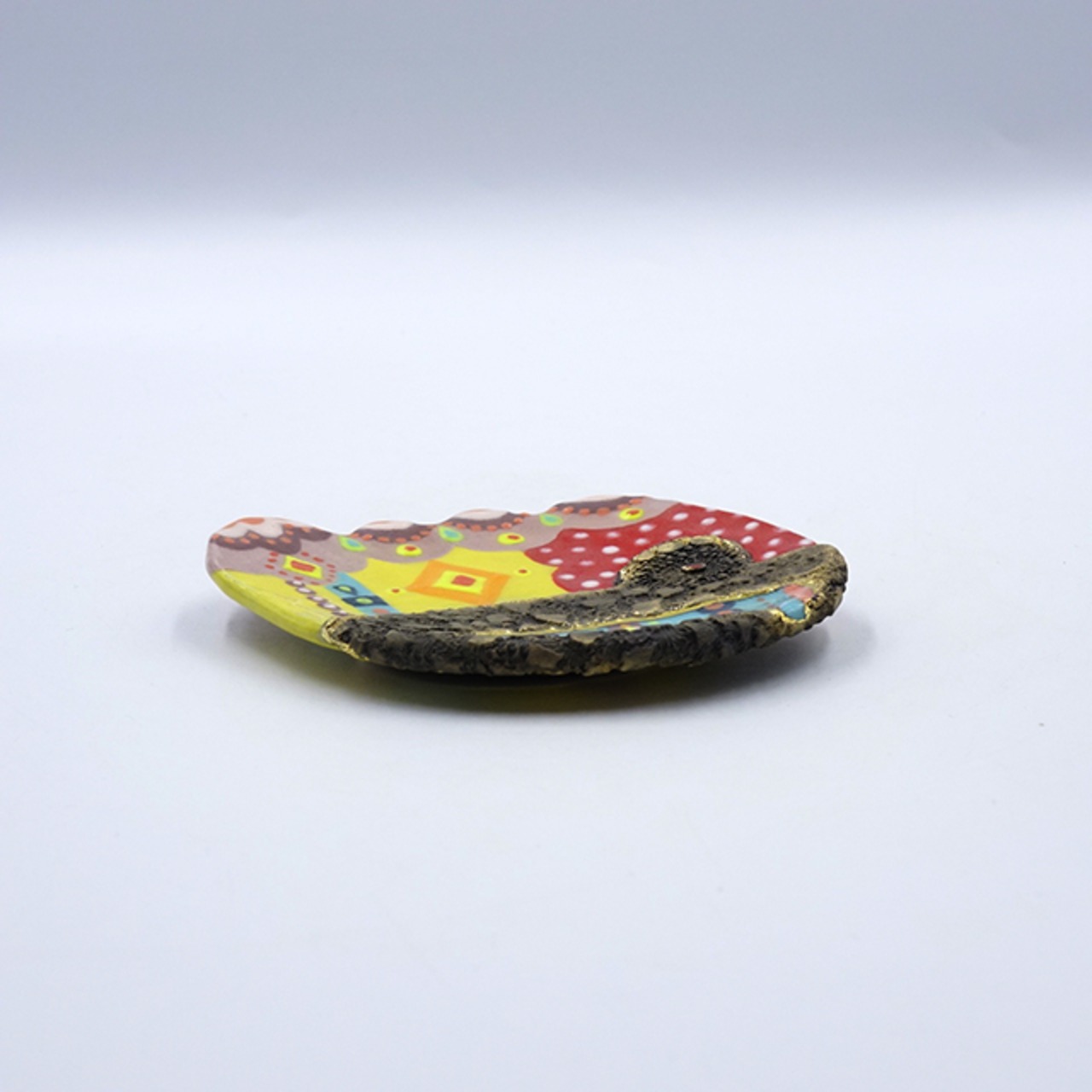 2種類の土を用い、釉薬を重ね掛けすることで、平面ながらも立体的な凹凸を生み出しています。