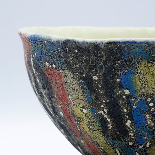 今回の馬川さんの作品は、釉薬の色合いや模様、質感に渋さがありつつも、絵柄には遊び心が感じられる楽しい仕上がりとなっています。