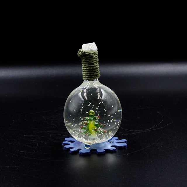 ブラックライトのもとで静かに浮かび上がるスノーボトルは、暗闇の中で幻想的な輝きを放ち、見る人を惹きつけます。