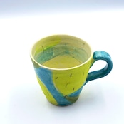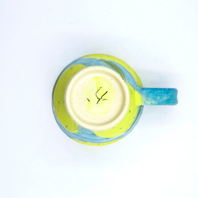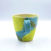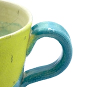 鮮やかな釉薬と布状の跡が特徴的な作品です。
