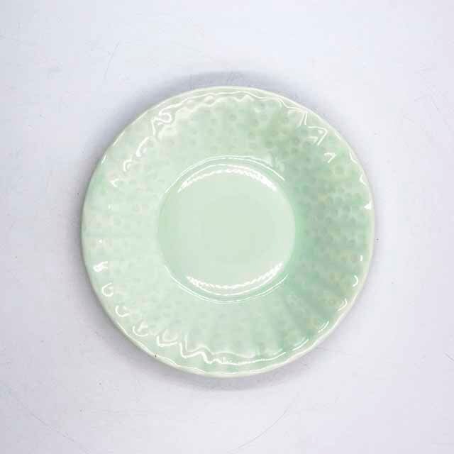 静かな美しさを感じさせる小さめの青白磁ドット皿。柔らかな色合いが食卓に優雅な雰囲気をもたらし、どんな料理にも調和します。ドットのデザインが視覚的な楽しさを演出し、普段使いや特別なシーンにも幅広くご利用いただけます。