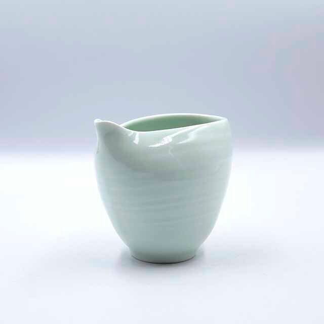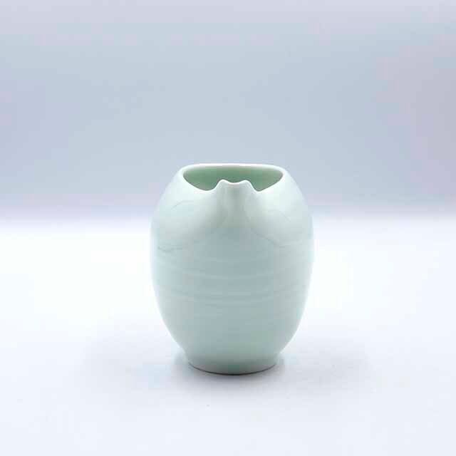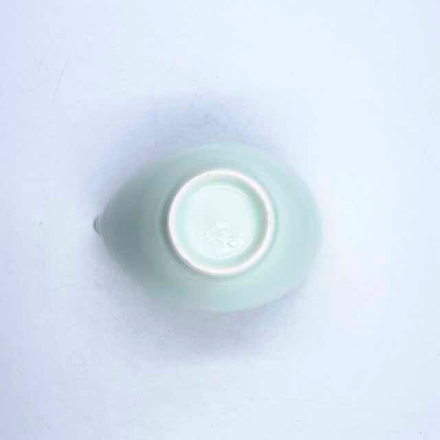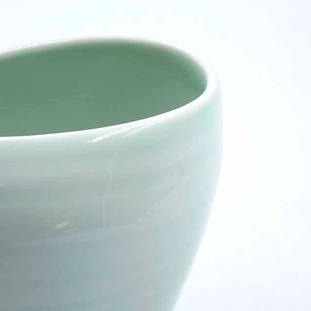 艶のある青磁の柔らかな青の色彩と磁器の質感が、やわらかな光をまとい、艶やかで魅力的な佇まいを引き立てています。