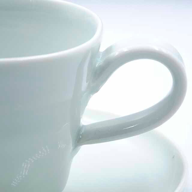 淡く青みを帯びた白磁の肌は清らかで上品な光沢があり、毎朝のコーヒータイムをそっと特別なものにしてくれます。すっきりとしたフォルムと滑らかな持ち手が使いやすく、手仕事ならではの温もりが日常の食卓に静かに寄り添います。