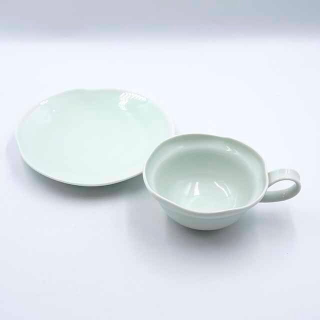 淡く青みを帯びた白磁の肌は清らかで上品な光沢があり、ティータイムをそっと特別なものにしてくれます。すっきりとしたフォルムと滑らかな持ち手が使いやすく、手仕事ならではの温もりが日常の食卓に静かに寄り添います。