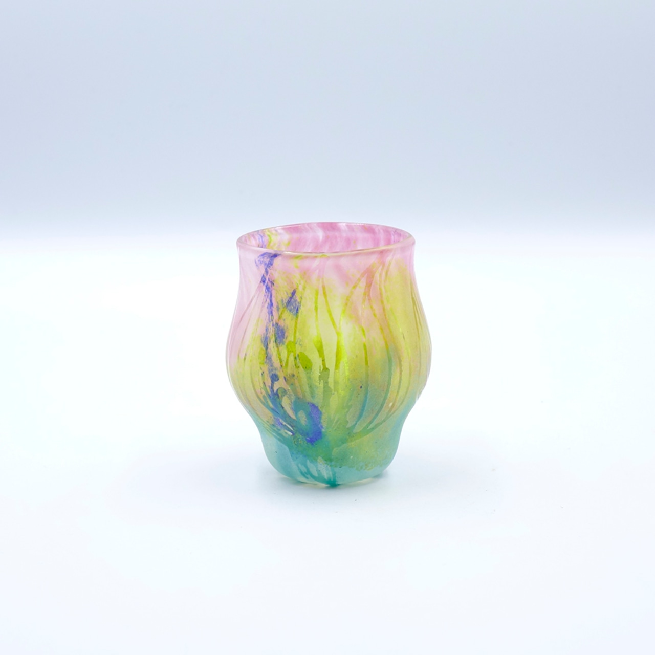 ガラスは滑らかな曲線と色鮮やかでありながらどこか落ち着いた雰囲気の色合いの作品です。