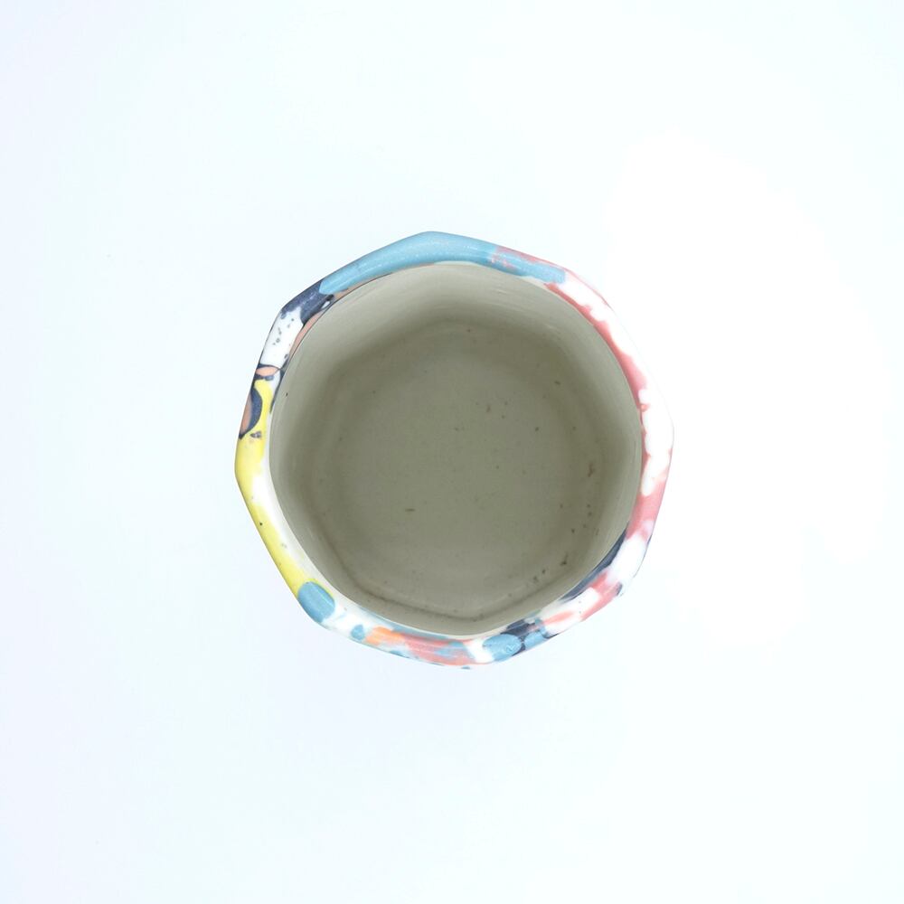 鮮やかな色合いと楽しいイラストが特徴で、手作りのぬくもりを感じさせるこの花器は、日々の生活に小さな喜びと明るい空間を演出してくれます。