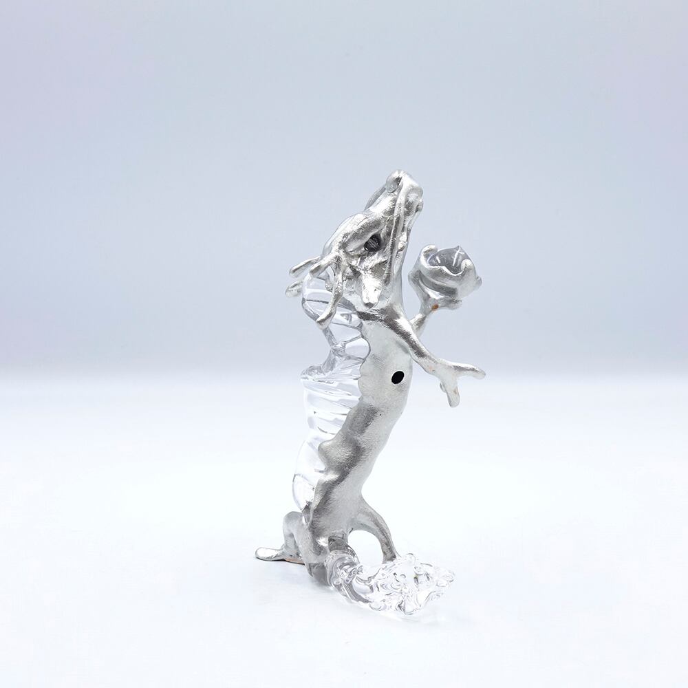 錫合金とガラスで作られた作品は細身さんならではの幻想的なかわいさに溢れています。