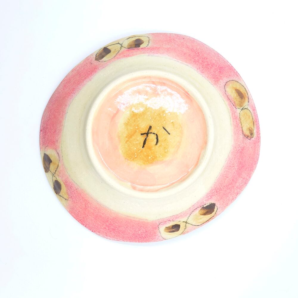 鮮やかな釉薬と布状の跡が特徴的な作品です。