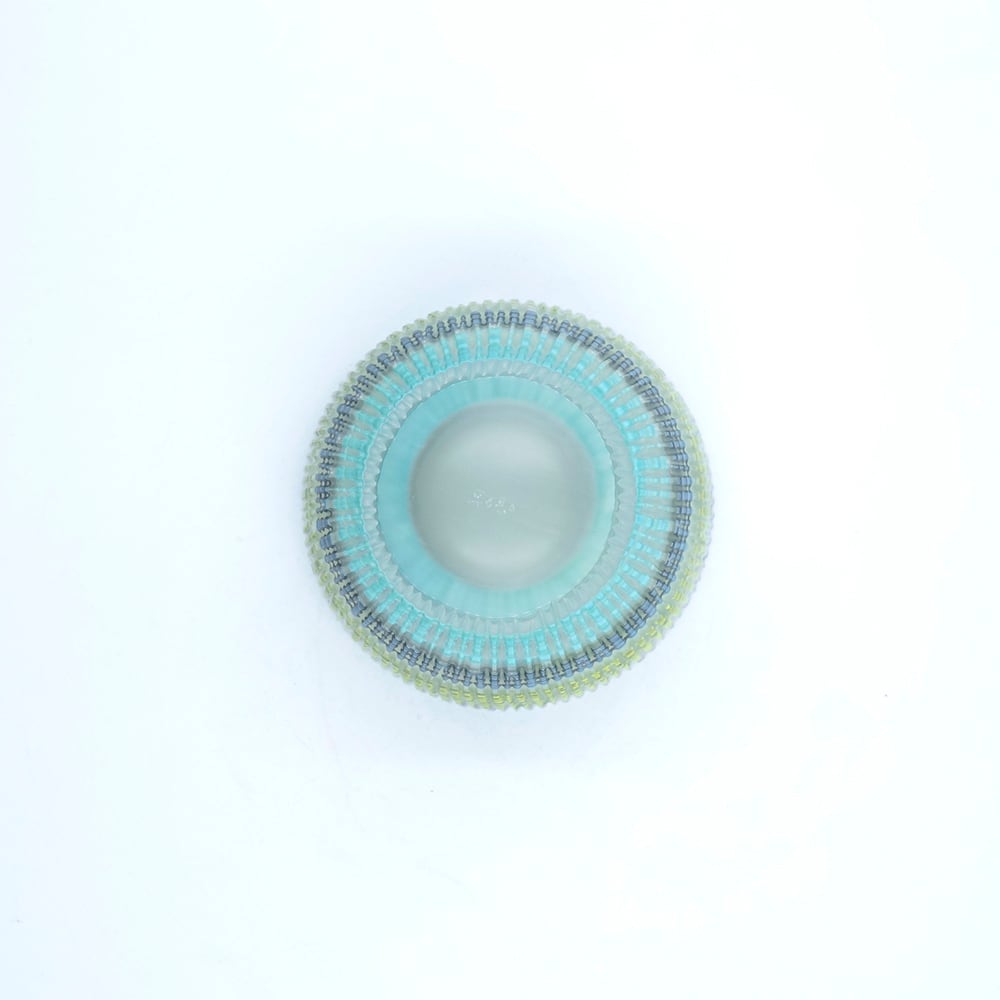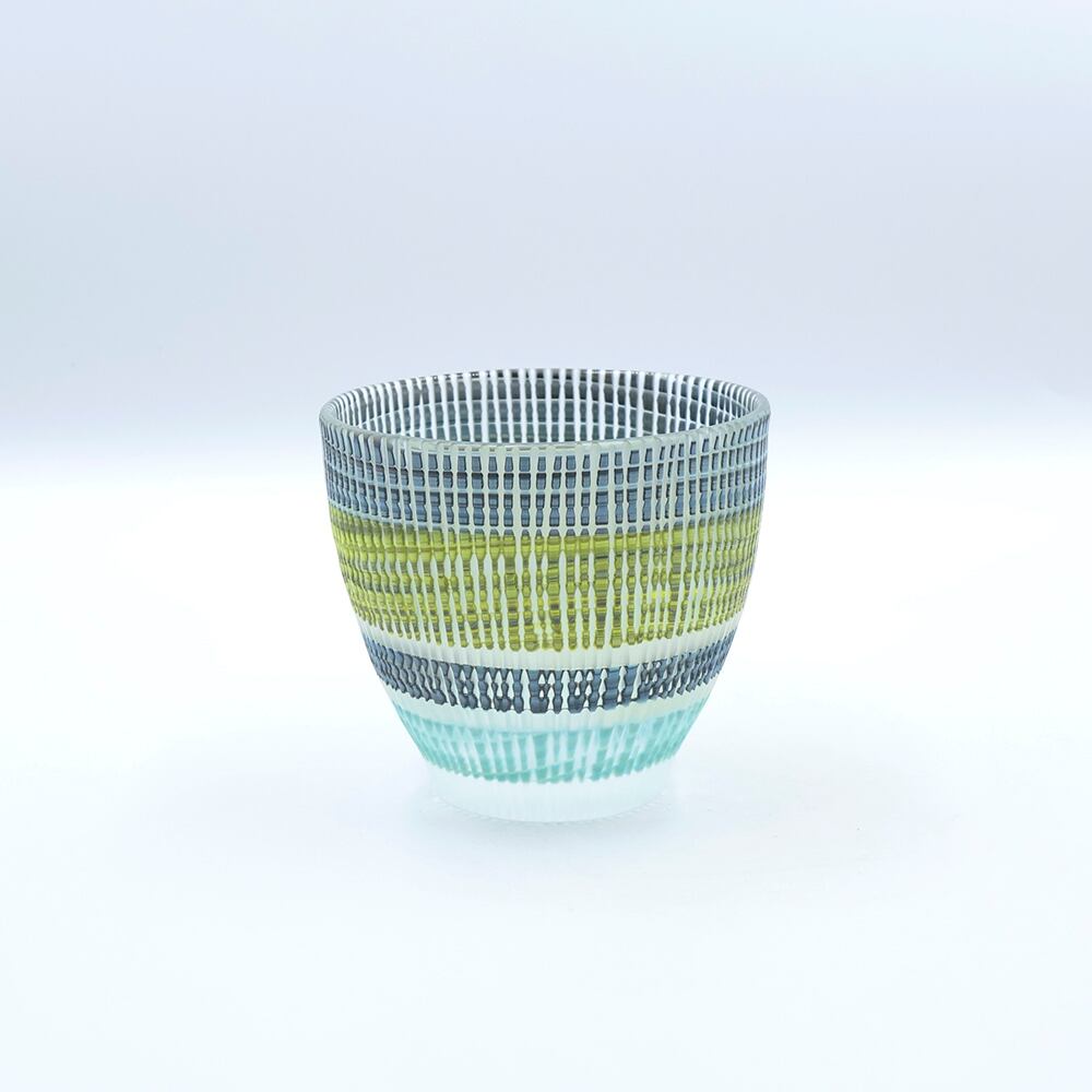 佐野曜子さんの織りシリーズは織物をイメージした細かく繊細なカットが不透明なガラスに爽やかな光を透過し美しい存在感を出しています。