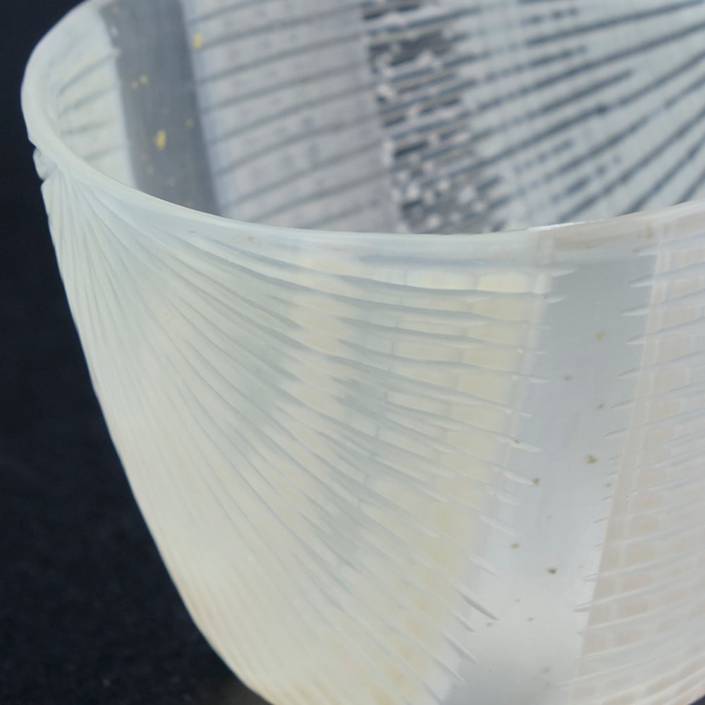 佐野曜子さんの織りシリーズは織物をイメージした細かく繊細なカットが不透明なガラスに爽やかな光を透過し美しい存在感を出しています。