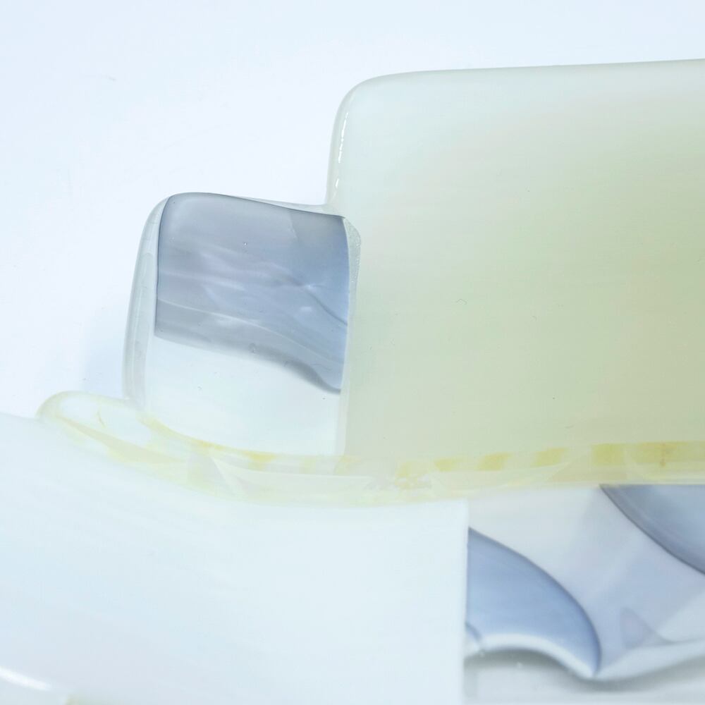 模様のついたガラスの板を合わせる技術とカットが素晴らしい作品です。